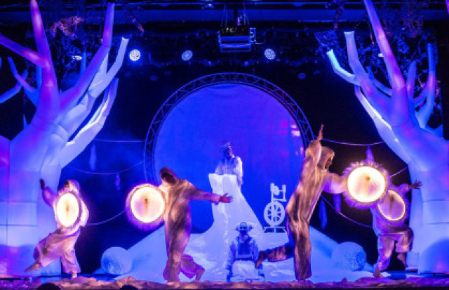 Эту сказку нам подарил северный народ – саамы. Саамов на земле осталось совсем мало, поэтому они живут очень дружно, дорожат своими традициями и сохраняют свою самобытную культуру. Музыка саамов – одна из древнейших музыкальных культур народов Севера. Тщательно изучив её, композитор спектакля Егор Шашин создал свои произведения, используя в них как народные инструменты, так и современные приемы. В нашем спектакле вы также увидите национальные танцы и костюмы саамов.