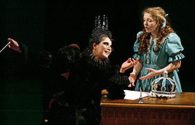 Очень часто инсценировщики, адаптирующие тексты Кэрролла для театра, объединяют «Страну Чудес» и «Зазеркалье». Мы пошли по другому пути: остановились на «Зазеркалье» – более сложной и строгой, «шахматной» истории, и постарались передать ее атмосферу. В сценической композиции Ивана Поповски можно встретить Белого Кролика, Черепаху Квази и Грифона из «Страны чудес», однако эти персонажи постановки входят в мир Зазеркалья и подчиняются его законам.
