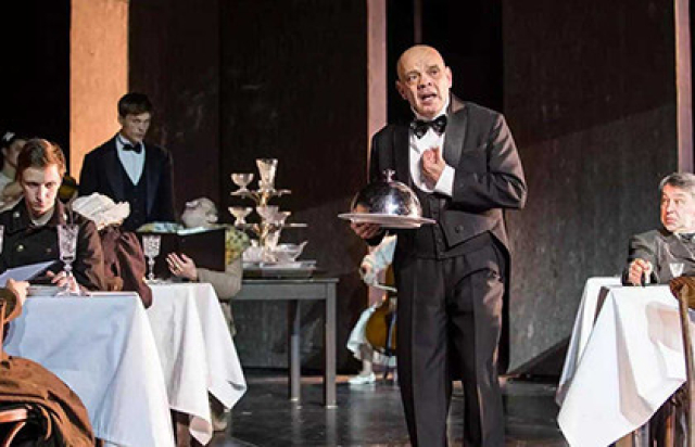 Спектакль по русской классике – ранней повести Ивана Шмелёва. Она принесла автору огромное признание в России начала ХХ века. В голодном революционном Крыму Шмелёв зашел в маленький ресторан в отчаянной надежде где-либо купить хлеб. Хозяин заведения случайно услышал фамилию посетителя и удивленно поинтересовался, не он ли автор книжки про жизнь официанта. Услышав утвердительный ответ, хозяин воскликнул: «Для вас хлеб есть!» Авторы спектакля верят, что спустя 100 лет стойкая популярность вновь вернется к истории на «немодную» тему – что значит в России быть честным человеком. Как символ неумолимо равнодушного пространства сценография к финалу выталкивает главного героя на авансцену. Огромные стены возвышаются за ним, подчеркивая ничтожность перед судьбой и делая очевидным человеческое величие.