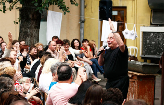 Необычное и невероятно волнующее действо разыгрывается во внутреннем дворике театра по совершенно особым законам – театра под открытым небом. Розовский придумал нечто под очень простым названием – «Песни нашего двора», и это нечто получилось на редкость заразительным.