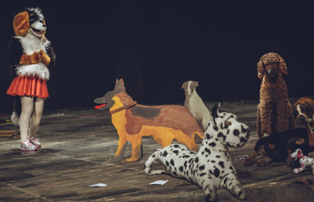 Наша героиня — Муму. Она вроде бы ребенок, но она сложная, витиеватая — бывают такие дети, напичканные знаниями, которые пришли к ним непонятно откуда. Эта Муму еще и в театральной школе учится. Впрочем, она даже не Муму — ее зовут Маша. Она племянница актера, который пришел играть и оставил ее во дворе, а она случайно оказалась в театре… Так что зритель, если он не читал «Муму» и не знает, почему утопили собаку, может спросить: «А где же Муму-то?».
